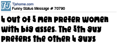- # 63419 9 out of 10 men prefer a woman with a big booty, the 10th guy prefers the 9 other men
