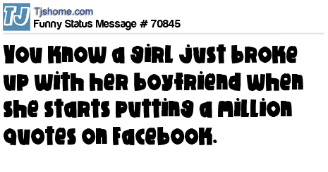 X is You know a girl just broke up with her boyfriend when she starts putting a million quotes on Facebook.