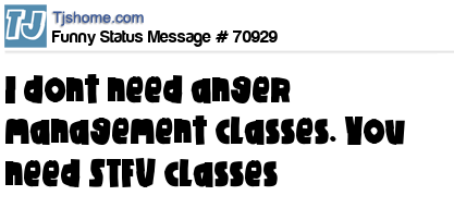 - # 95069 I dont need anger managment classes you need STFU classes ;)