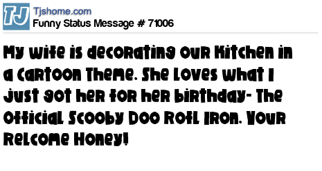 X My wife is decorating our kitchen in a Cartoon Theme. She loves what I just got her for her birthday- The Official Scooby Doo Rofl Iron. Your Relcome Honey!