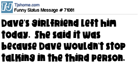 X is Dave's girlfriend left him today. She said it was because Dave wouldn't stop talking in the third person.