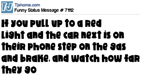 X  If you pull up to a red light and the car next is on their phone step on the gas and brake, and watch how far they go