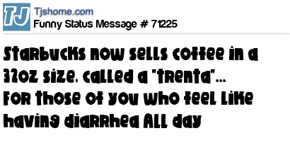 - # 43023 Starbucks is coming out with a new larger size cup...the Trenta. Which is Latin for *I Have To Pee*.