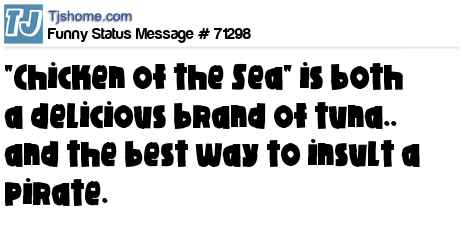 X "Chicken of the Sea" is both a delicious brand of tuna.. and the best way to insult a pirate.