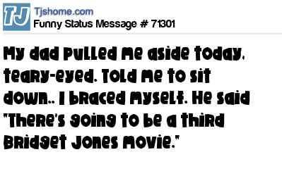 X  My dad pulled me aside today, teary-eyed. Told me to sit down.. I braced myself. He said "There's going to be a third Bridget Jones movie."