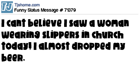 X is I cant believe I saw a woman wearing slippers in church today! I almost dropped my beer.