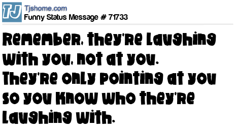 - # 64523 Remember, they're laughing with you, not at you. They're only pointing at you so you know who they're laughing with.