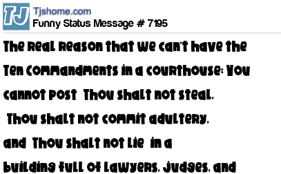X The real reason that we can't have the Ten Commandments in a courthouse: You cannot post “Thou shalt not steal,” “Thou shalt not commit adultery,” and “Thou shalt not lie” in a building full of lawyers, judges, and politicians. It creates a