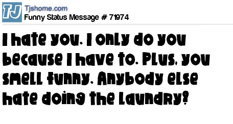X  I hate you. I only do you because I have to. Plus, you smell funny. Anybody else hate doing the laundry?