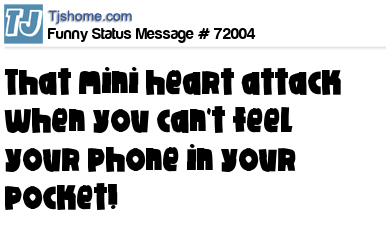 - # 110688 That mini heart attack you get when you reach in your pocket and your phone isn't there.