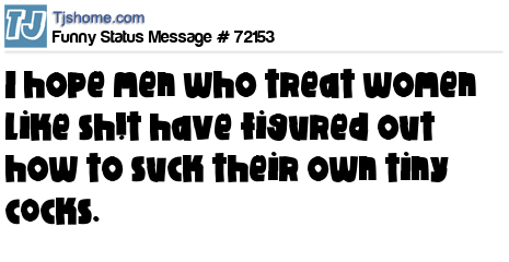 X I hope men who treat women like sh!t have figured out how to suck their own tiny c0cks.
