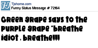 X Green grape says to the purple grape "breathe idiot , breathe!!!