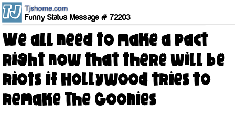 X says We all need to make a pact right now that there will be riots if Hollywood tries to remake The Goonies