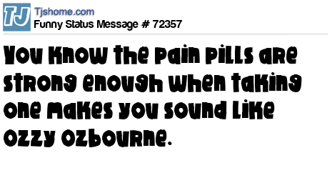 X You know the pain pills are strong enough when taking one makes you sound like Ozzy Ozbourne.