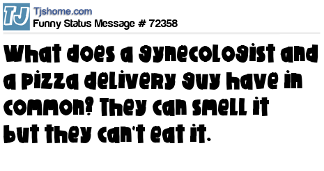 - # 45293 what do a pizza delivery guy and male gynecologist have in common? They can SMELL it, but they can't EAT it lol