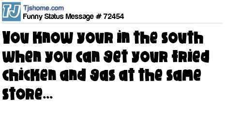 X says You know your in the south when you can get your fried chicken and gas at the same store...