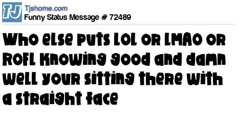 - # 69569 Who else puts LOL or LMAO or ROFL knowing good and damn well your sitting there with a straight face.