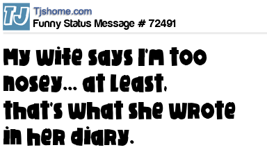 X says My wife says I'm too nosey... at least, that's what she wrote in her diary.