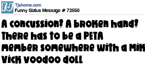 X says A concussion? A broken hand? There has to be a PETA member somewhere with a Mike Vick voodoo doll