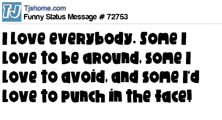 - # 73673 I love everybody. Some I love to be around. Some I love to avoid. And some I'd love to punch in the face.