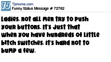 X Ladies, not all men try to push your buttons. It's just that when you have hundreds of little b!tch switches, it's hard not to bump a few.