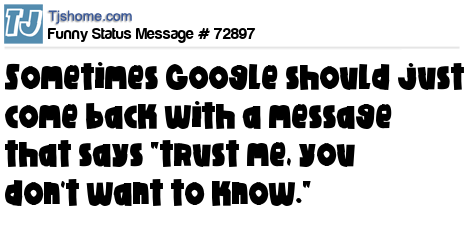 X Sometimes Google should just come back with a message that says "trust me, you don't want to know."