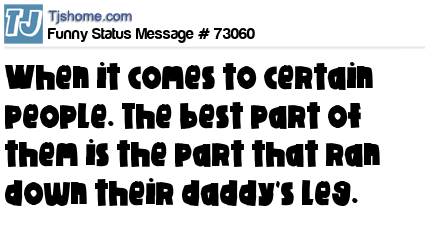 X When it comes to certain people. The best part of them is the part that ran down their daddy's leg.