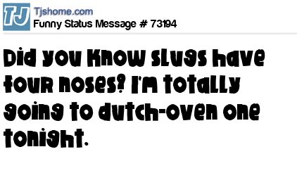X says Did you know slugs have four noses? I'm totally going to dutch-oven one tonight.