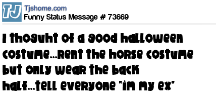 X says i thoguht of a good halloween costume...rent the horse costume but only wear the back half...tell everyone "im my ex"