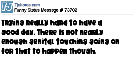 - # 73705 Trying really hard to have a good day. There is not nearly enough genital touching going on for that to happen though.