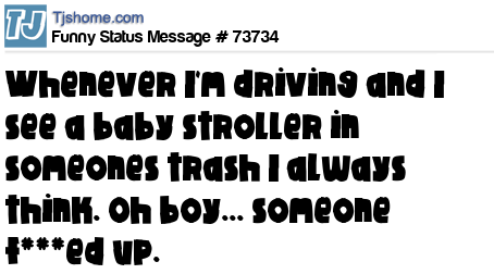 X Whenever I'm driving and I see a baby stroller in someones trash I always think. Oh boy... someone f***ed up.