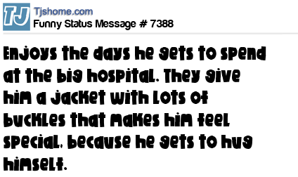 X enjoys the days he gets to spend at the big hospital. They give him a jacket with lots of buckles that makes him feel special, because he gets to hug himself.