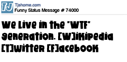 X We live in the "WTF" generation. [W]ikipedia [T]witter [F]acebook