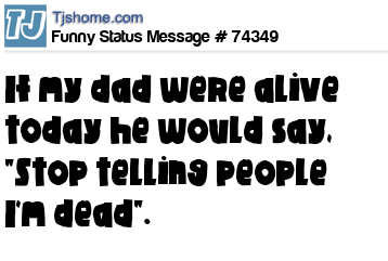 - # 98534 If my dad were alive today he would say, "Son,, stop telling people I'm dead".