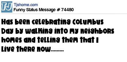 - # 74462 Celebrating Columbus Day by walking into some stranger's house and telling them I live there now.