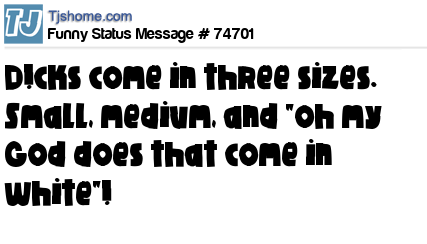 X says D!cks come in three sizes. Small, medium, and "oh my God does that come in white"!
