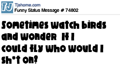 - # 166290 I sometimes watch birds and wonder "If I could fly who would I shit on?"