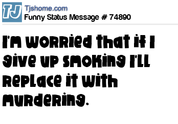 X I'm worried that if I give up smoking I'll replace it with murdering.