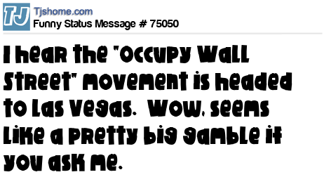 X I hear the "Occupy Wall Street" movement is headed to Las Vegas. Wow, seems like a pretty big gamble if you ask me.