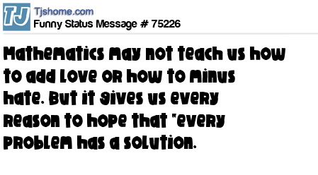 X Mathematics may not teach us how to add love or how to minus hate. But it gives us every reason to hope that "every problem has a solution.