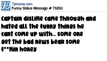 X is Captain dislike came through and hated all the funny things he cant come up with... some one get the bad news bear some f**kin honey