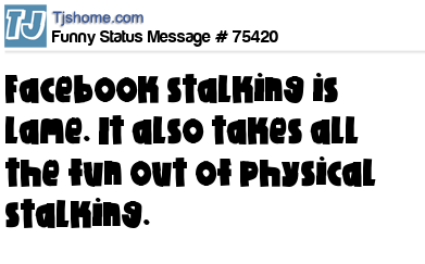- # 12016 was told recently that it really doesn't constitute stalking if you inform the other party. I like that. So, Greater Facebook Community, I'm probably stalking you.
