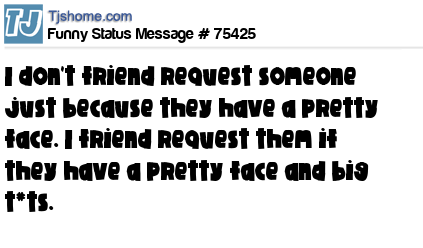 X I don't friend request someone just because they have a pretty face. I friend request them if they have a pretty face and big t*ts.
