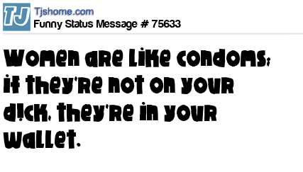 X Women are like condoms; if they're not on your d!ck, they're in your wallet.