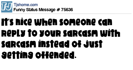 X It's nice when someone can reply to your sarcasm with sarcasm instead of just getting offended.
