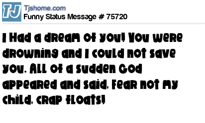 X is I Had a dream of you! You were drowning and I could not save you. All of a sudden God appeared and said, Fear not my child, crap floats!