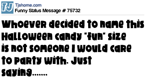 - # 139331 Halloween is just over a week away now. When it comes to candy bars, the term fun-sized is misleading. There is nothing fun about your candy bar being 1/8 the size of a regular bar. You should call them what they are: “disappointment-sized.”