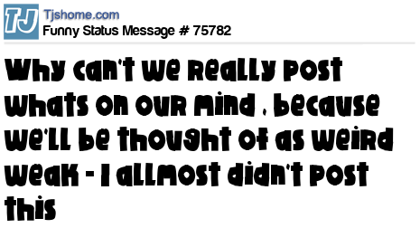 X Why can't we really post whats on our mind , because we'll be thought of as weird weak - I allmost didn't post this