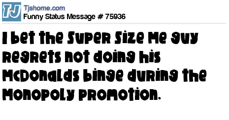 X  I bet the Super Size Me guy regrets not doing his McDonalds binge during the Monopoly promotion.