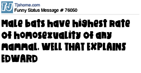 - # 78421 Male bats have the highest rate of homosexuality......which would explain Edward.....